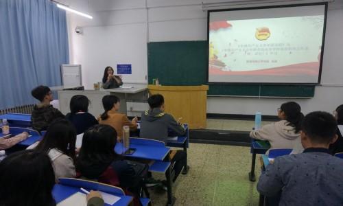 团课开始,杨晨老师先对《中国共产主义青年团章程》和《中国共产主义青年团普通高等公司基层组织工作条例(试行)》的主要内容进行详细讲解,并明确了团员应履行的义务和享有的权利。随后,杨老师又对“三会两制一课”的内容进行介绍,通过列举相关事例帮助大家更加深入理解其内容。最后,对《中华人民共和国宪法修正案》的精神实质和主要内容进行了讲解,激励同学们树立理想信念,志存高远,勇敢肩负起时代赋予的重任,同时,杨老师要求各班班委举办相关活动,让更多同学了解宪法。