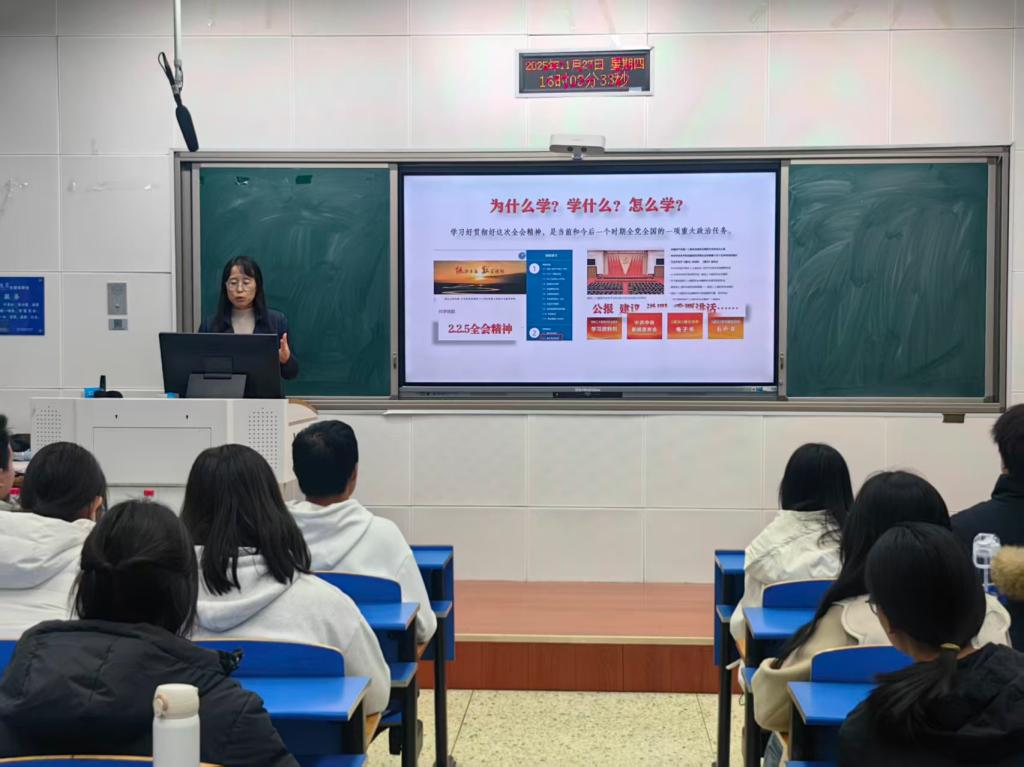 为推动党的二十届四中全会精神在校园落地生根,引导青年员工坚定理想信念、找准成长方向,11月27日下午,304永利集团在北三教B103室举办学习党的二十届四中全会精神专题党课。公司党委书记祃海霞担任主讲,各班级员工干部代表参加学习。