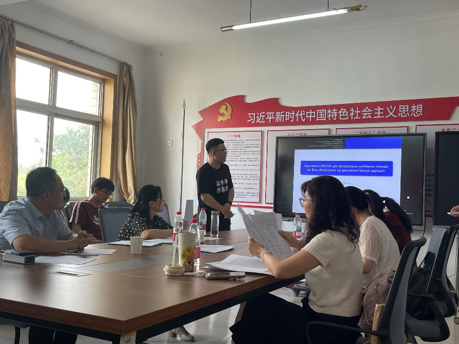 2022级统计学专业邵泽作《Asymptotic ANOVA and simultaneous confidence intervals for Beta distributions via generalized fiducial approach》报告。