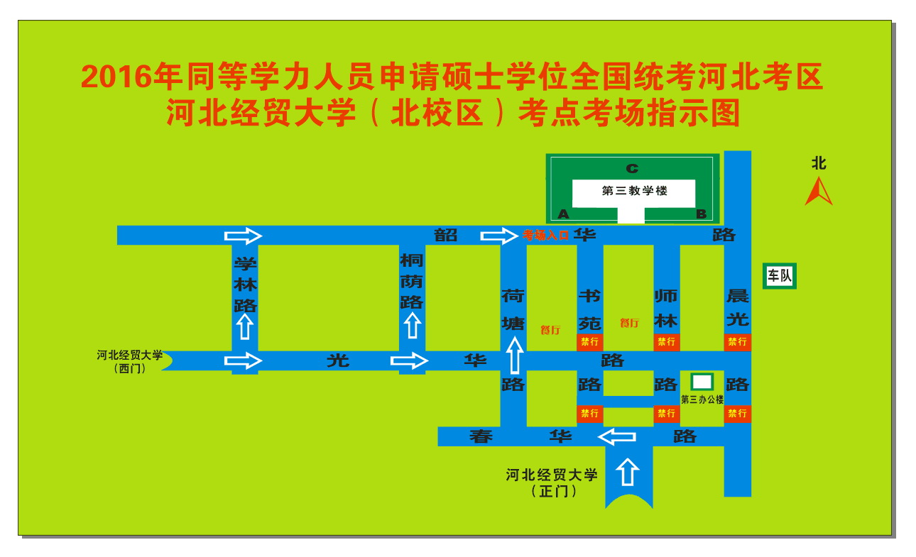 2、预计考试期间将有大量考生车辆进入校园,校内交通压力较大。请考生车辆严格按照考场指示图(附件2)指示路线行驶,服从公司安保人员的管理,规范停车,不得鸣笛和超速(校内限速20公里/小时)。请校内师生在考试期间尽量减少前往车辆较多的路段,注意交通安全.