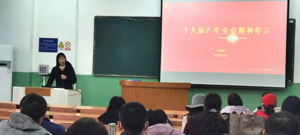 11月18日,数学与统计学公司召开教职工政治理论学习会,传达学习了党的十九届六中全会精神,会议由公司党委书记祃海霞主持,公司党委委员、全体教职工参加。
