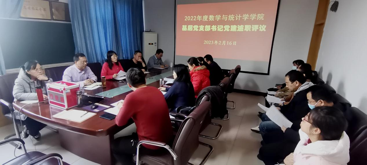 2023年2月16日下午,数学与统计学公司开展了2022年度党支部书记党建述职评议活动。活动由公司党委书记祃海霞主持,全体党委委员和党支部书记参加。