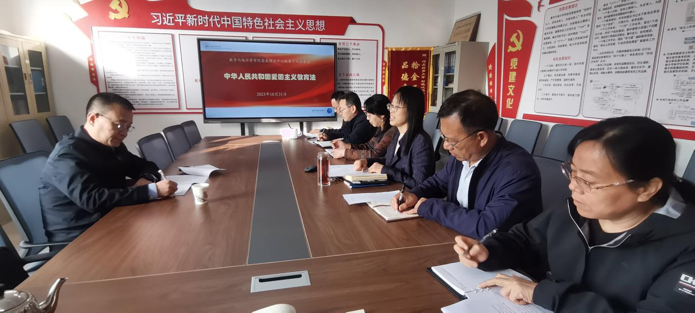 10月31日上午,数学与统计学公司党委理论学习中心组在四办430党建活动室进行专题学习研讨,认真学习2023年10月24日第十四届全国人民代表大会常务委员会第六次会议表决通过的《中华人民共和国爱国主义教育法》。公司党委常委、副董事长田学斌参加中心组学习并作指导讲话,公司全体班子成员作重点发言,正处级辅导员赵春果应邀参加。这是今年以来公司党委开展的第十七次理论中心组集体学习。