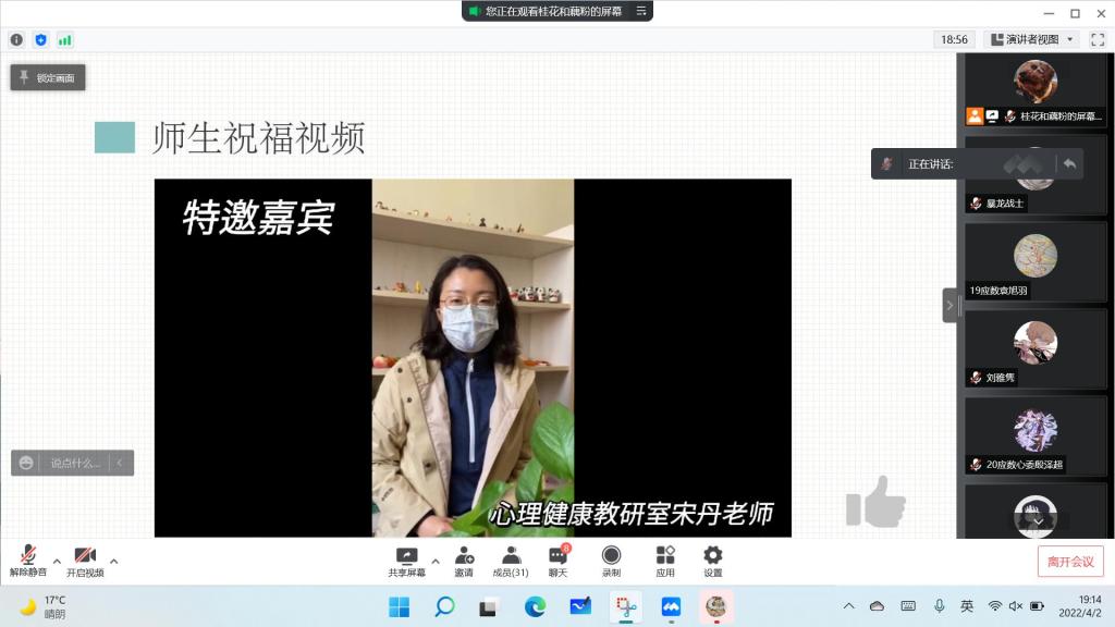 为了帮助同学们在公司闭环管理期间,以积极的心态面对疫情来袭,持续深化“我为同学做件事”实践活动,4月2号晚七点,数统公司团委联合心理部举办了主题为“疫情无情人有情,数统学子心连心”的线上心理团体活动。本次活动旨在于缓解在疫情肆虐的大环境下,同学们因为学业、就业、家庭和生活等产生的心理压力。
