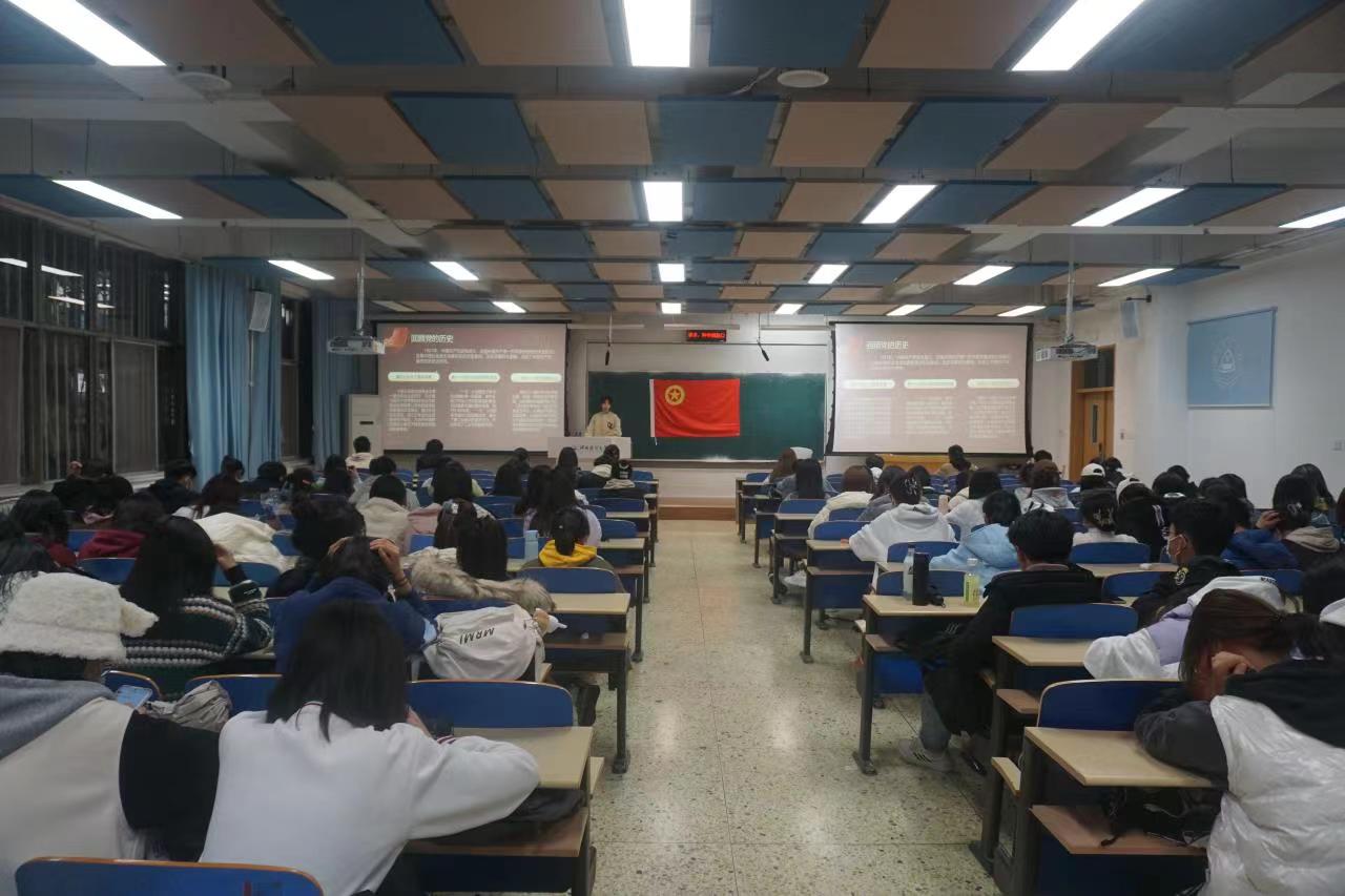 11月11日,数学与统计学公司于北三教B301举行第十三期“青年马克思主义者培养工程”骨干培训班第五课,团委宣传部部长张芮宁讲授第五课,全体青马班成员参加。