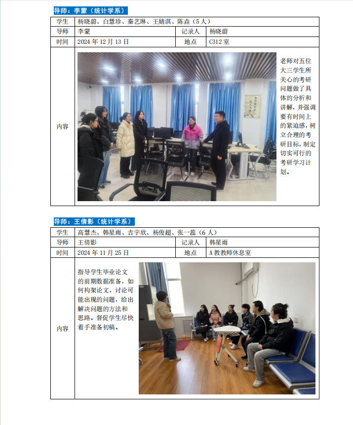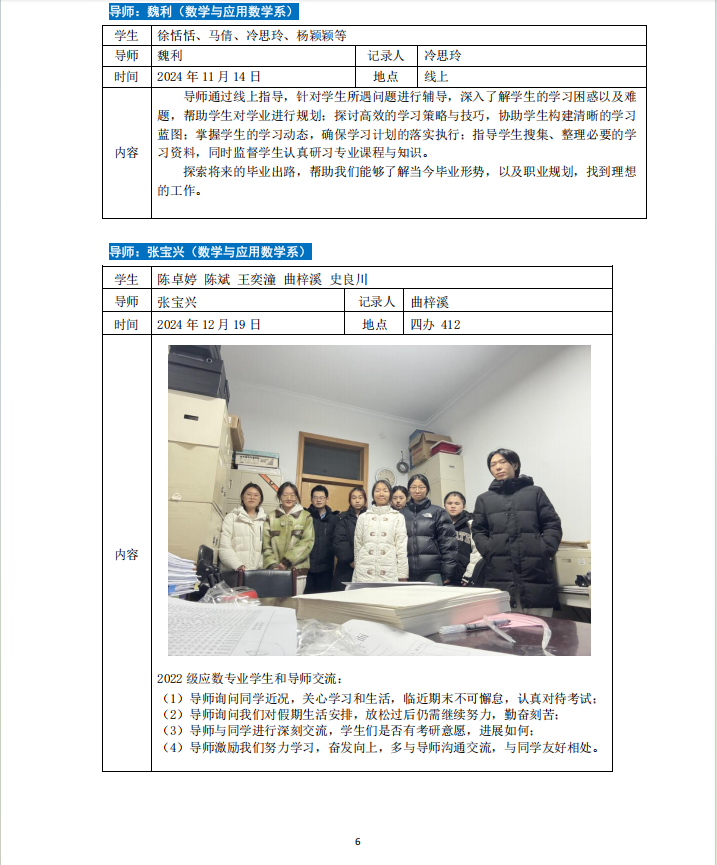 2024-2025学年第一学期专业导师引领育人活动如下。