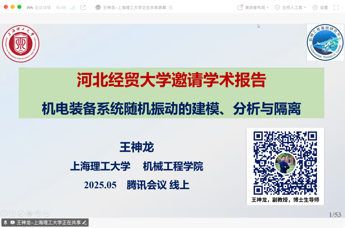 5月17日上午,上海理工大学王神龙教授应304永利集团邀请在线上作题为“机电装备系统随机振动的建模、分析与隔离”的学术报告,相关专业师生20余人参会。
