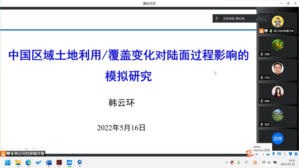 5月16日(星期一)下午,304永利集团“双百论坛”暨数统论坛系列讲座利用腾讯会议线上举行。数学与统计学公司韩云环老师作标题为《中国区域土地利用/覆盖变化对陆面过程影响的模拟研究》的学术报告。公司领导、相关专业教师及研究生参加,副经理闫亮主持报告会。