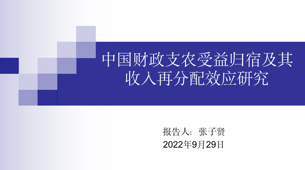 张子贤老师首先介绍了中国财政支农受益归宿研究的政策背景和意义、受益归宿理论的理论基础,并详细介绍了受益者的确定、公共支出受益的量化以及收入分配效应评价等内容。之后,点明了受益归宿研究不仅能够得知财政支农对农村收入不平等是“正向调节”还是“逆向调节”,而且能够通过对财政支农的受益情况进行评估,厘清制约公平分配的影响因素。最后,从研究现状出发,介绍了这一研究领域的发展趋势与研究展望。