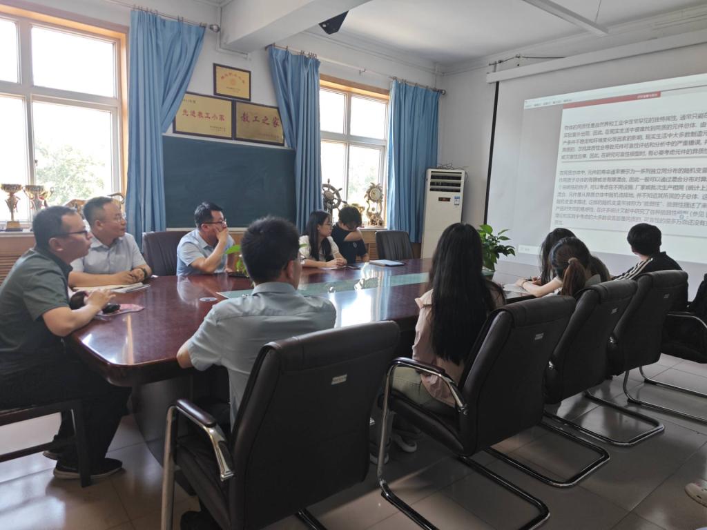 魏印朝老师首先介绍了异质性的概念和元件分配问题的研究背景及意义,系统介绍了近年来异质元件分配研究的国内外研究现状。然后,对所做工作进行了详细阐述,分别针对极限冲击和累积冲击模型下的串联和并联系统进行建模得到相应的系统可靠性。通过随机序和超优序的方法比较了不同分配策略下的系统可靠性并进而得到了最优分配策略。此外,还分析了产品的异质性对系统可靠性的影响。这些结果可为制造商的采购和生产提供一些实用的建议。最后,魏印朝老师介绍了一些相关问题的未来展望,并同与会师生就报告内容进行了深入探讨。