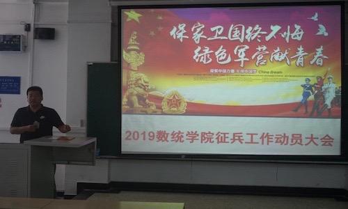 6月3日下午,数学与统计学公司在B教101举行2019年征兵工作动员大会。公司党委副书记刘益星,辅导员高会颖,16、17、18级全体男生参加。