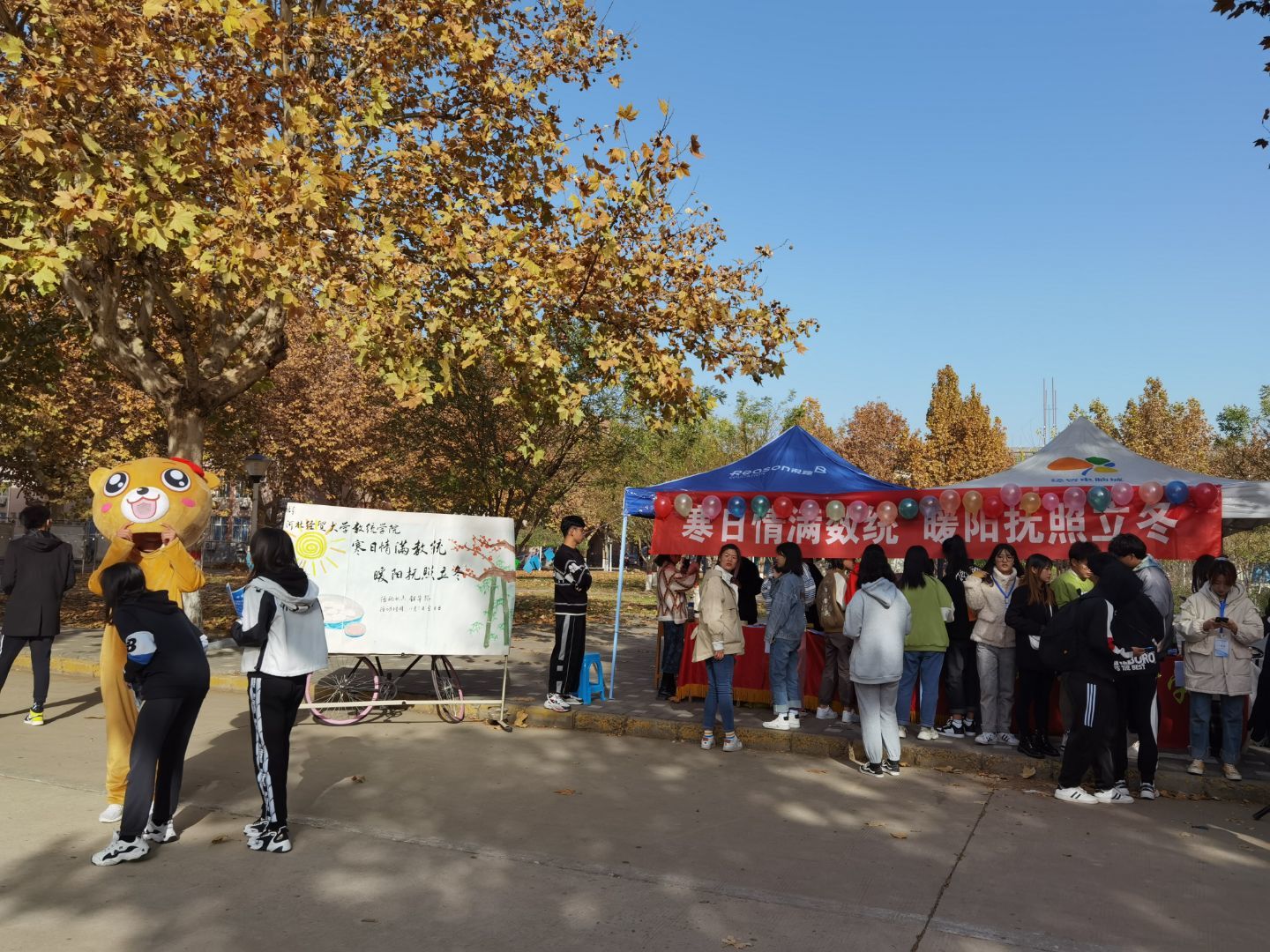 为做好疫情防控常态化下员工管理工作,数学与统计学公司开展校园志愿服务系列活动。11月7日-8日,公司青年志愿者中心在韶华路举办了以“寒日情满数统,暖阳抚照立冬”为主题的立冬送温暖活动。