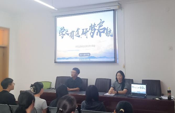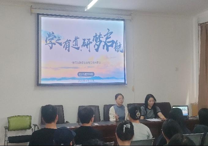 为帮助2024级新生进一步了解研究生阶段的学习、工作和生活,明确新阶段的目标和规划,增进新老生之间的情谊,9月11日下午,公司研究生在四办434举办“学之有道,研梦启航”新老生经验交流分享会。本次会议由院研究生会主席李琪主持,22统计学李琪、樊祥嘉、宋盈盈、23应统崔帅作为优秀员工代表同大家分享自己的心得,辅导员赵海燕老师出席会议,24级全体研究生参加。