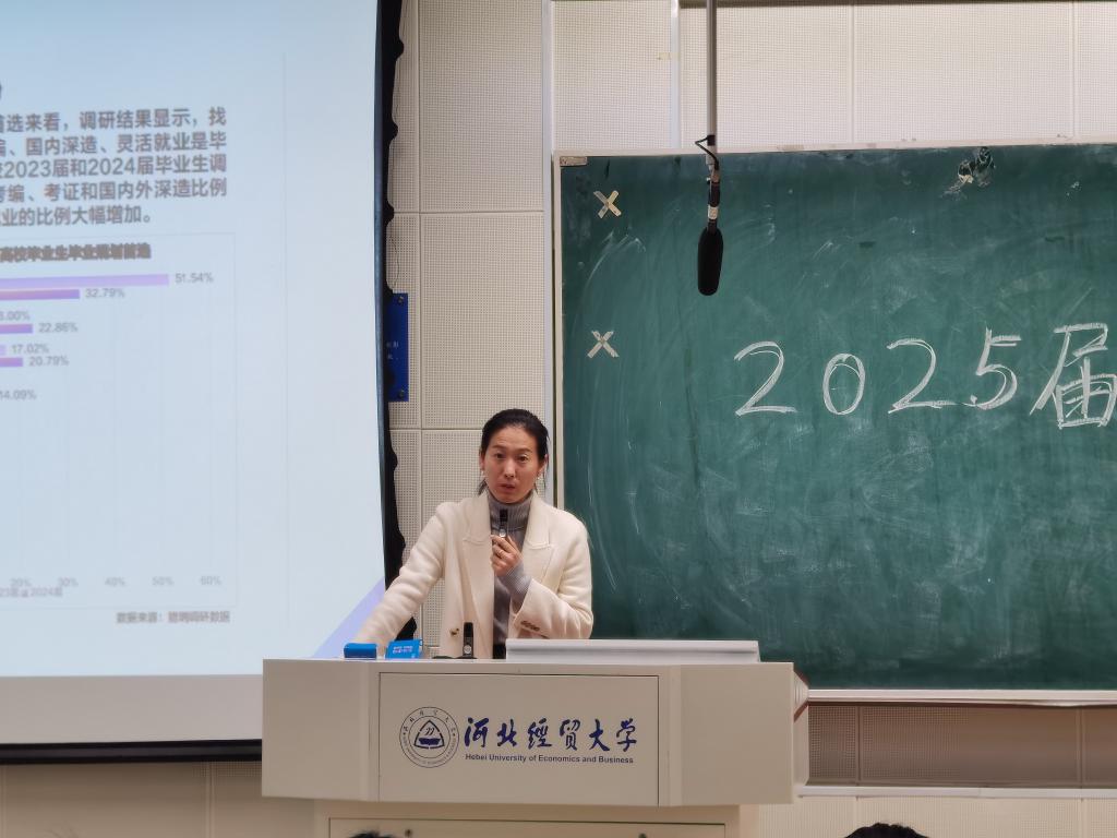 高会颖首先介绍了公司往届员工考研、就业情况,针对就业信息获取途径、渠道和全国高校毕业生毕业去向登记与网上签约流程进行详细解读。