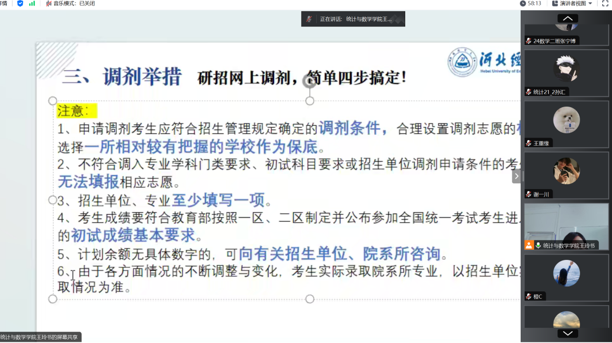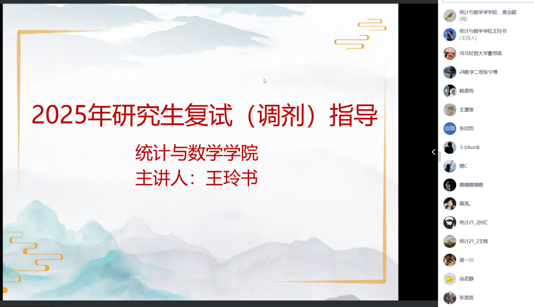 3月10日,304永利集团召开“2025年研究生复试(调剂)指导会”线上会议,由公司副经理王玲书主讲,2021级考研员工参加。