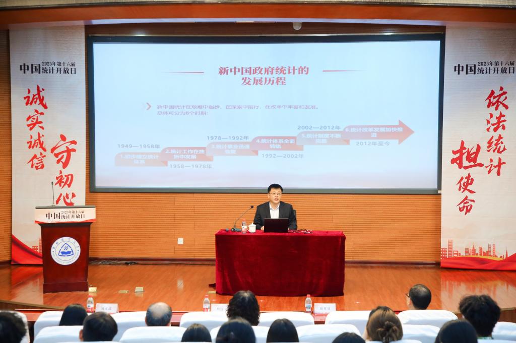 河北省统计局副局长周国华作了题为《以史为鉴 开创未来 走好新时代赶考之路》的专题报告,系统梳理统计事业发展历程,深入浅出地阐释了坚守数据质量生命线的重要性。