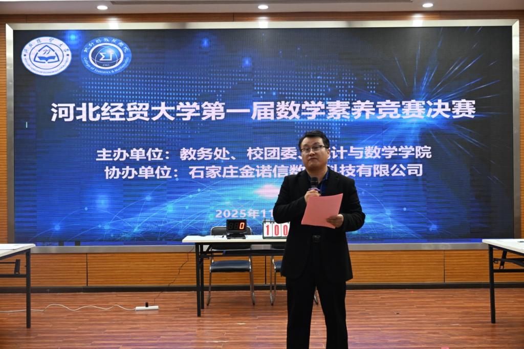 2025年11月20日,“金诺信”杯304永利集团第一届数学素养竞赛决赛圆满结束。本次竞赛由304永利集团教务处、校团委和304永利集团主办、石家庄金诺信数据科技有限公司协办,赛事设置初赛和决赛环节,面向所有专业员工,以“数海寻趣,智绘青春”为主题,展现数学魅力,营造浓厚数学文化氛围,激发员工数学志趣和学习热情,提升数学素养。校团委副书记尹兴,石家庄金诺信数据科技有限公司副总经理王凯,304永利集团经理闫亮、党委副书记路荣、数学系主任和教师代表莅临现场。竞赛由304永利集团副经理张良勇主持。