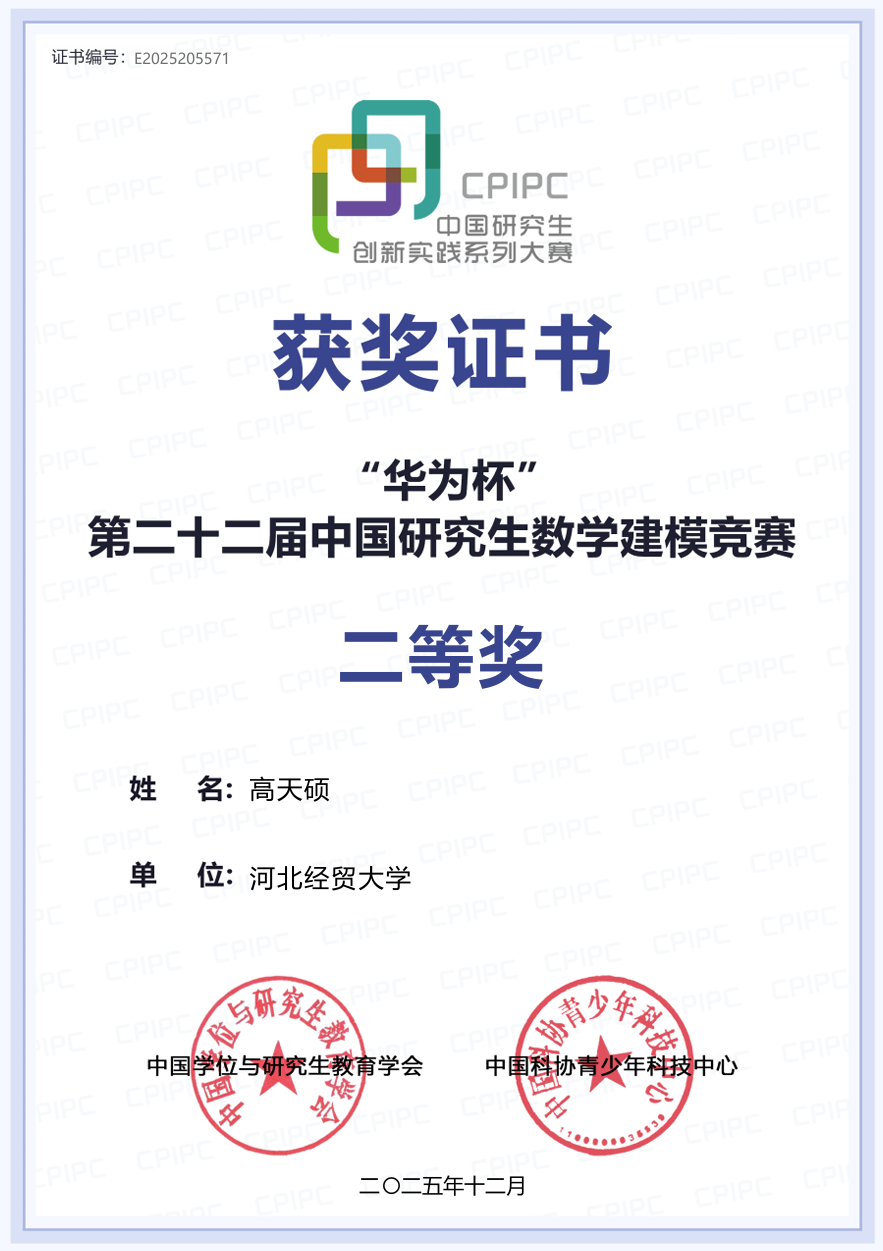 “华为杯”第二十二届中国研究生数学建模竞赛评选结果揭晓,公司研究生团队喜获全国二等奖1项,全国三等奖4项。具体名单如下: