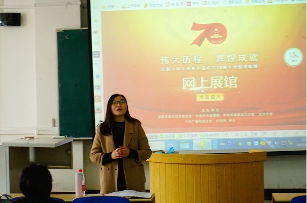 12月13号下午,数学与统计学公司在北三教b101组织团学干部观看“庆祝新中国成立70周年大型成就展网上展馆”活动。公司团委书记杨晨老师及员工会全体成员参加。