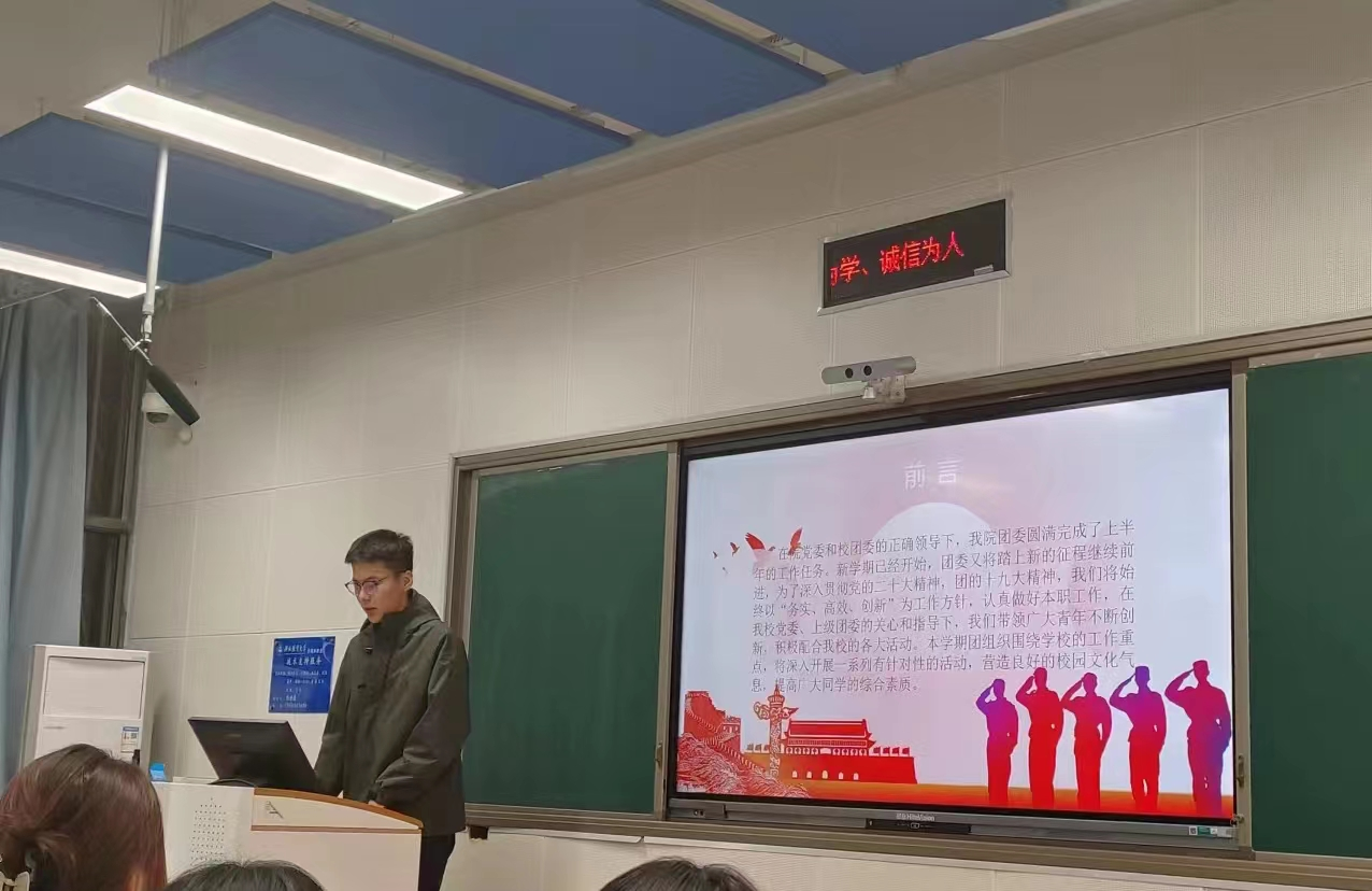 10月16日晚7点,数学与统计学公司员工会于北三教B召开2023-2024学年第一次全体例会,院团委书记王洋老师、主席团成员、各部门部长以及全体2023级员工会新成员参加,会议由员工会执行主席王重缘主持。