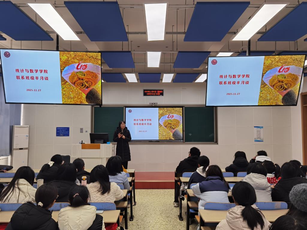11月27日,公司举办联系班级半月谈活动。公司党委书记祃海霞、副经理张良勇作为班级导师,与2025级应用统计学1、2班全体同学开展交流座谈。活动由班级辅导员王洋主持。