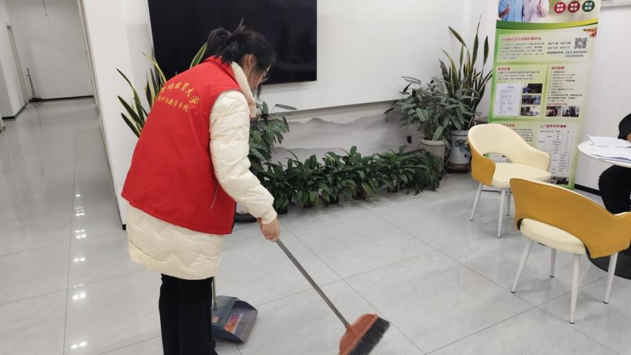 同时,志愿者们还对服务大厅进行了全面清扫,为居民营造整洁有序的办事环境。