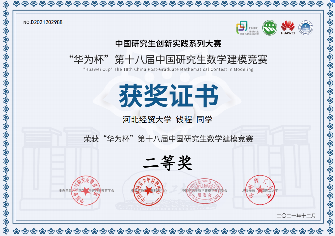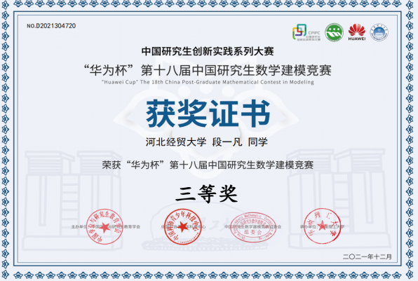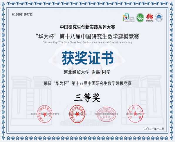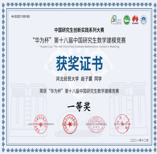 “华为杯”第十八届中国研究生数学建模竞赛评选结果揭晓,公司研究生团队喜获全国一等奖1项(获奖比例为1.164%),二等奖1项(获奖比例为12.293%),三等奖2项(获奖比例为19.89%)。