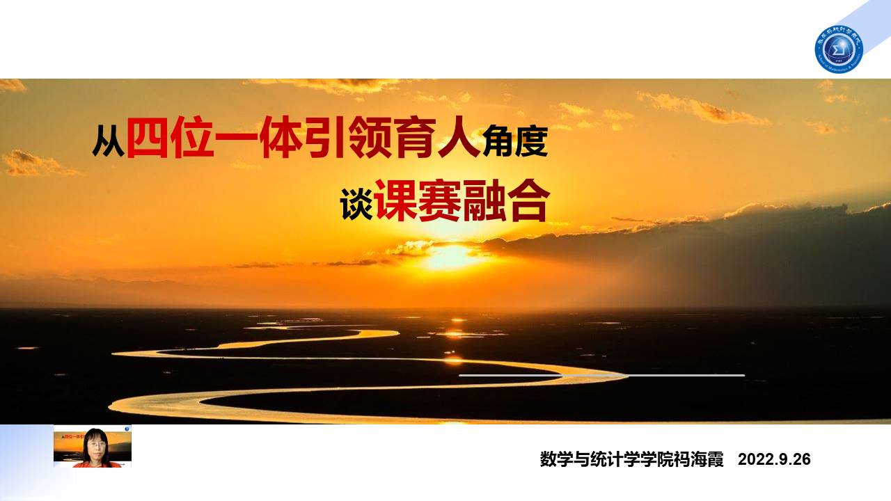 9月26日,由教学评估与教师教学发展中心主办、数学与统计学公司承办的本年度第53期教学沙龙顺利举行。数统公司党委书记祃海霞教授做“从四位一体引领育人角度再谈课赛融合”研讨交流。