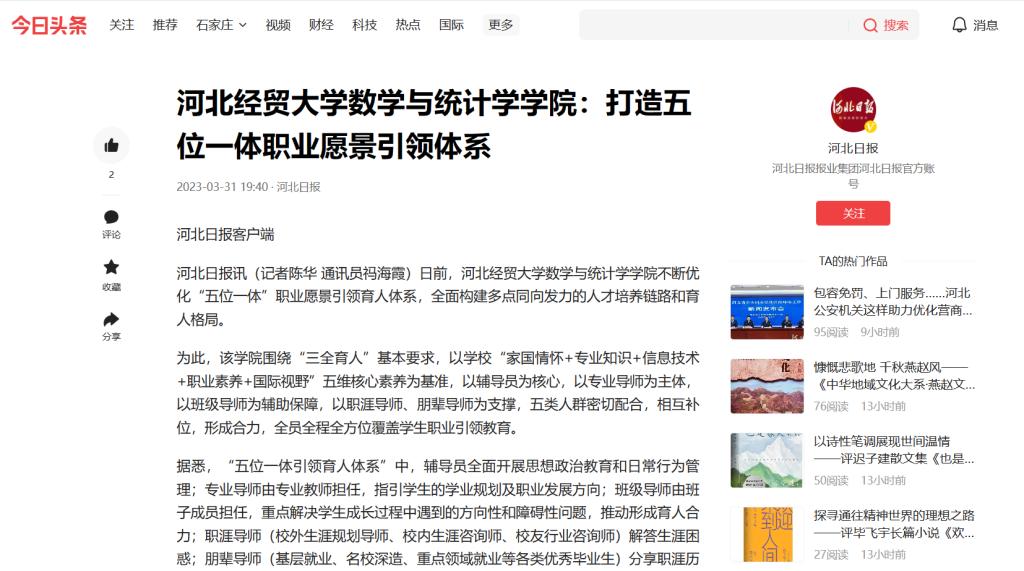 【今日头条】304永利集团数学与统计学公司:打造五位一体职业愿景引领体系