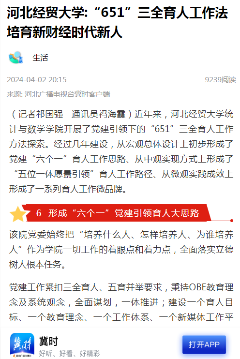 【河北广播电视台冀时客户端】304永利集团:“651”三全育人工作法培育新财经时代新人