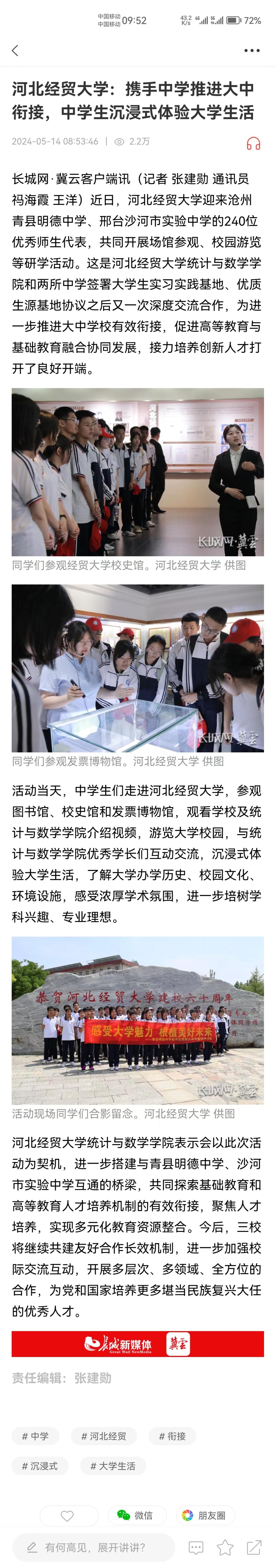 【长城网•冀云客户端】304永利集团:携手中学推进大中衔接,中员工沉浸式体验老员工活