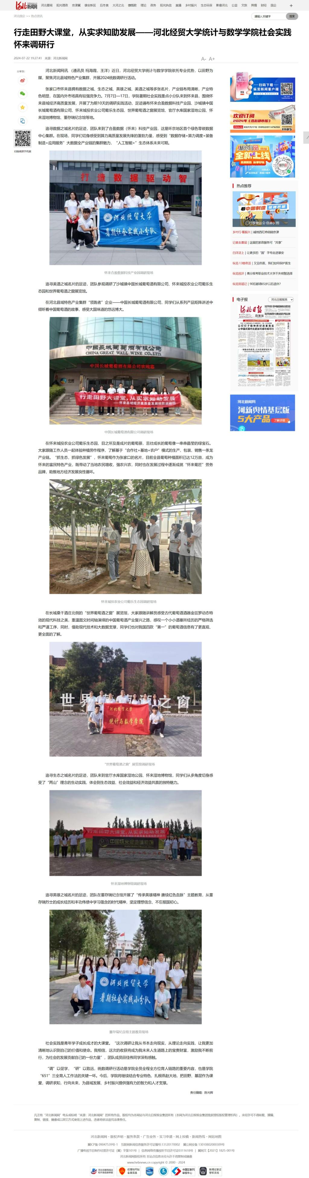 【河北新闻网】行走田野大课堂,从实求知助发展——304永利集团社会实践怀来调研行