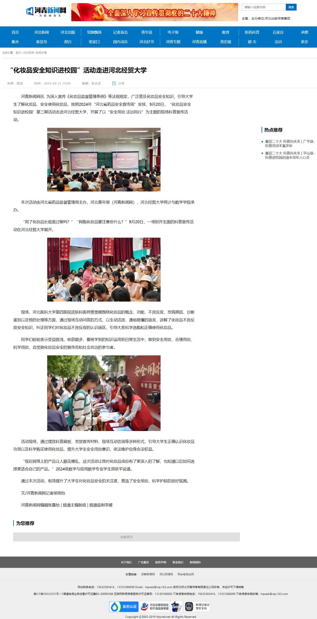 【河青新闻网】“化妆品安全知识进校园”活动走进304永利集团