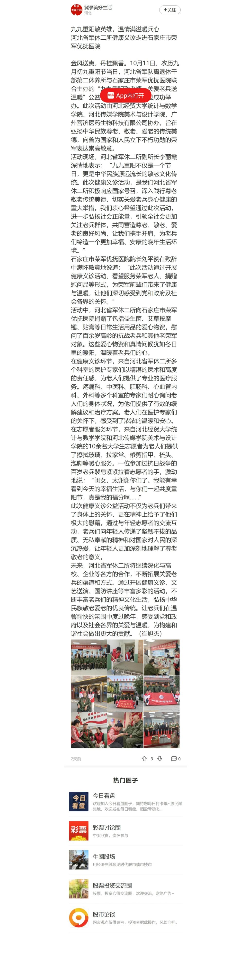 【网易新闻】九九重阳敬英雄,温情满溢暖兵心 河北省军休二所健康义诊走进石家庄市荣军优抚医院