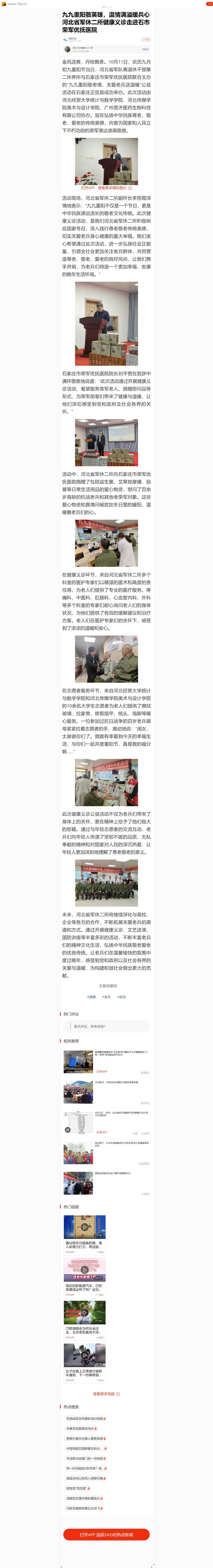 【搜狐新闻】九九重阳敬英雄,温情满溢暖兵心 河北省军休二所健康义诊走进石市荣军优抚医院