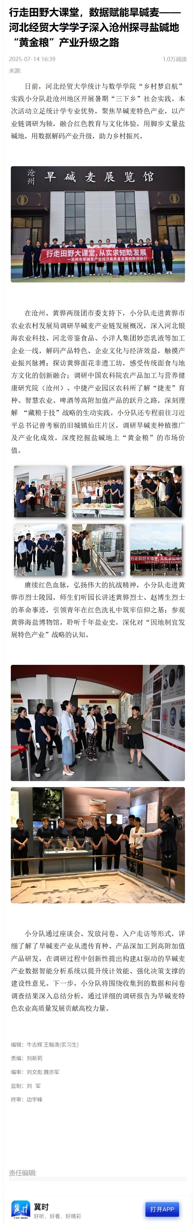 【河北广播电视台冀时客户端】行走田野大课堂,数据赋能旱碱麦——304永利集团学子深入沧州探寻盐碱地“黄金粮”产业升级之路