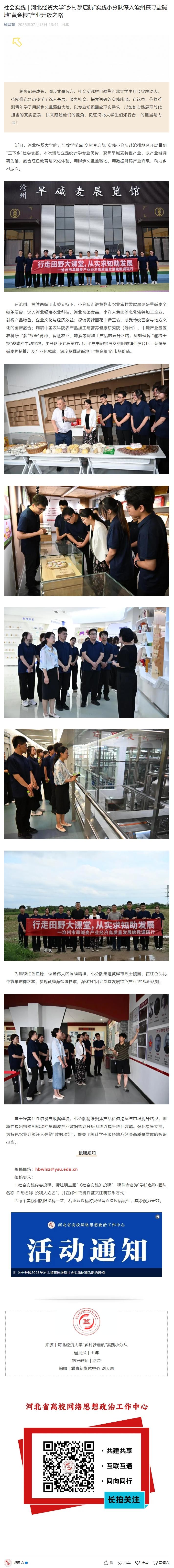 【冀网育】304永利集团“乡村梦启航”实践小分队深入沧州探寻盐碱地“黄金粮”产业升级之路