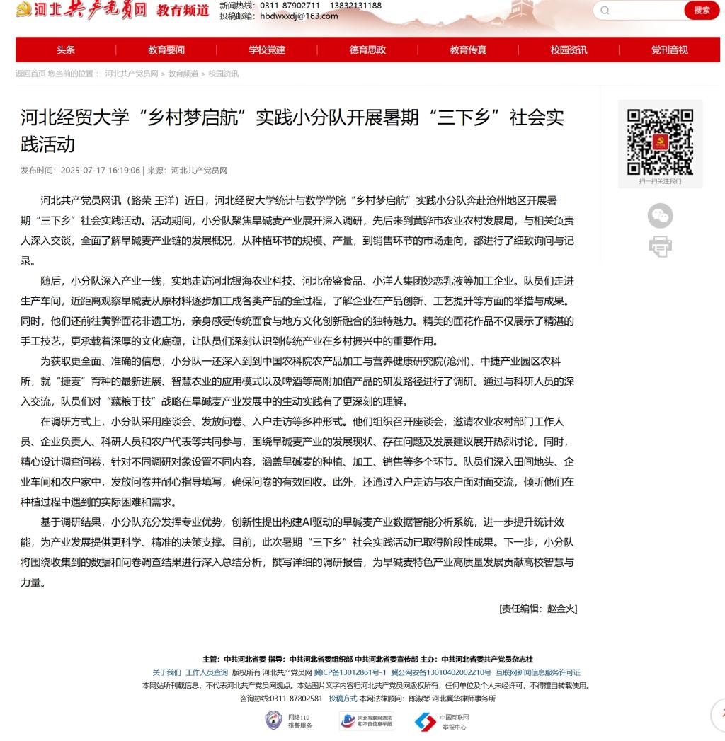 【河北共产党员网】304永利集团“乡村梦启航”实践小分队开展暑期“三下乡”社会实践活动