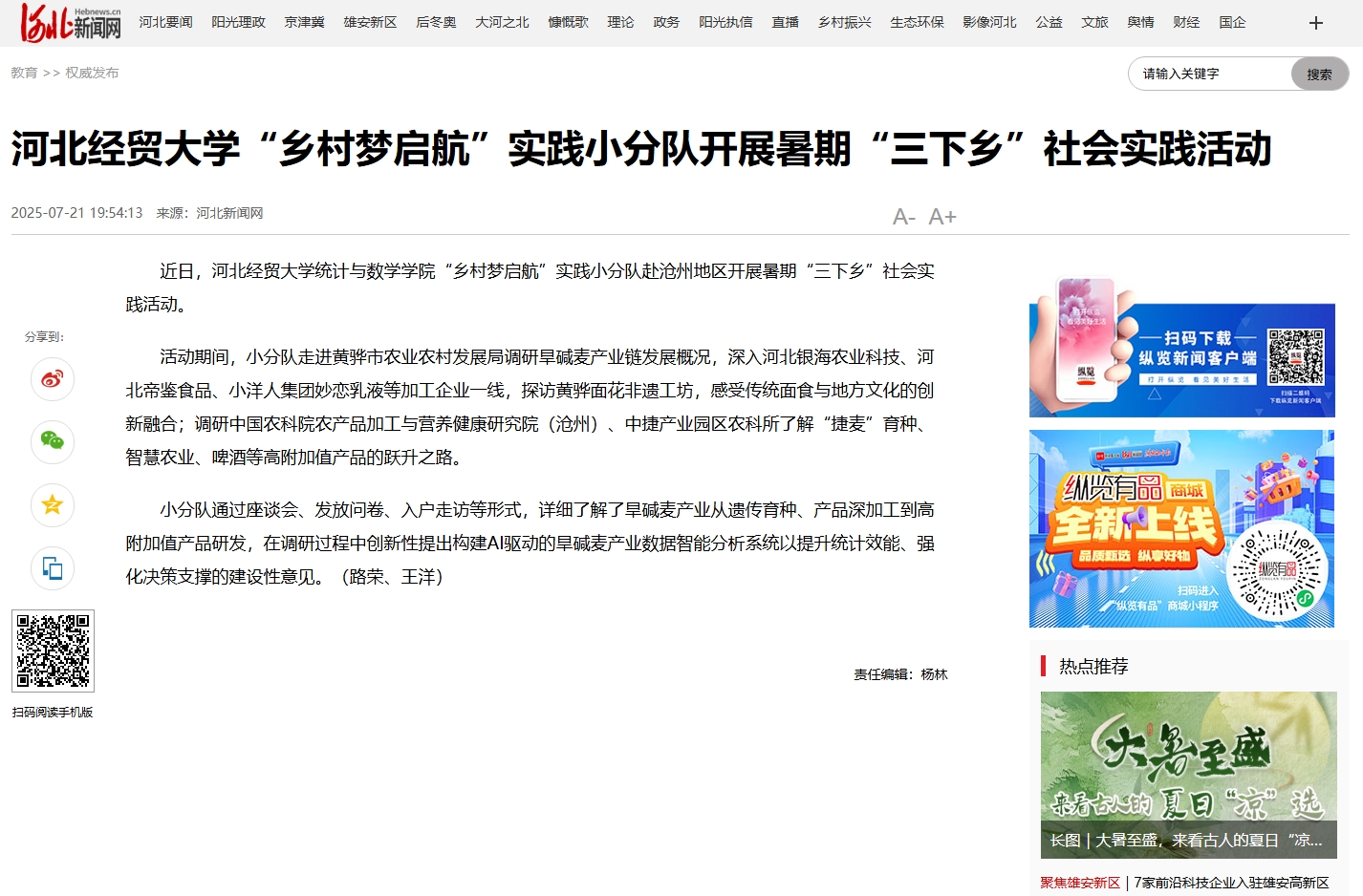 【河北新闻网】304永利集团“乡村梦启航”实践小分队开展暑期“三下乡”社会实践活动